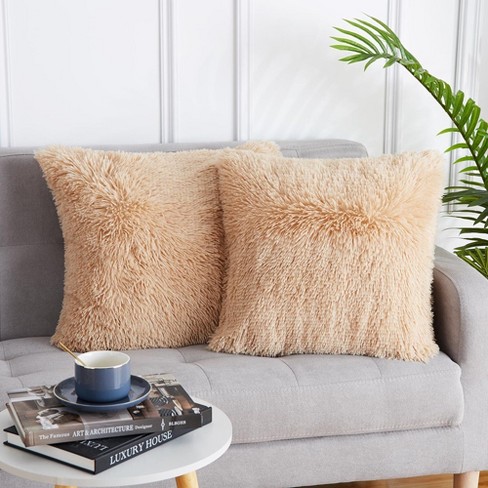 OYIMUA Fluffy Decorative Throw Pillow Covers 16 16 Faux Fur Farmhouse Luxury Pillow Cases Soft Plush Fuzzy Beige Cushion Covers for Sofa Couch Living