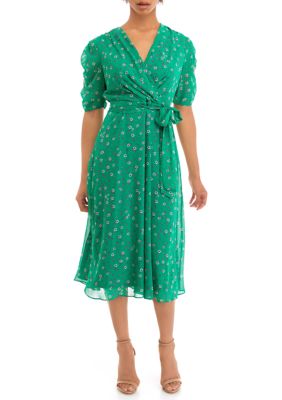 Belk sandra darren dresses clearance, Sandra Darren Women s Short Sleeve V Neck Floral Print Surplice clearance