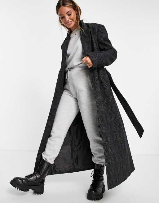 Topshop wrap belted maxi coat in charcoal check