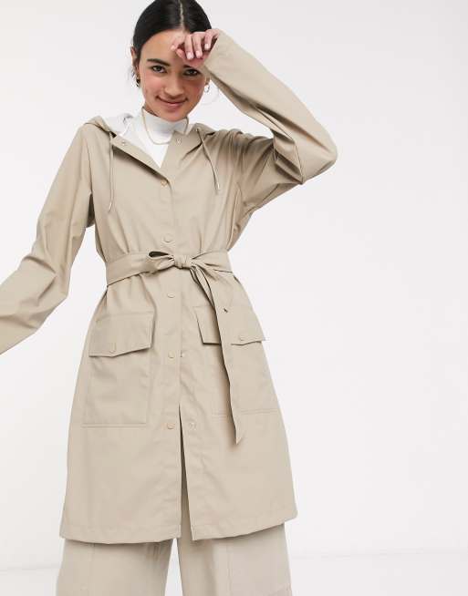 Rains belted waterproof jacket in beige