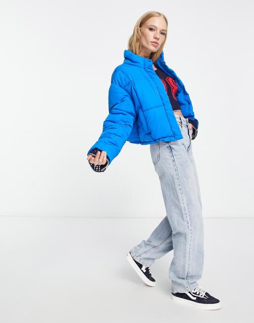Bershka blue jacket clearance, Cropped Faux Fur Jacket from Bershka on 21 Buttons clearance