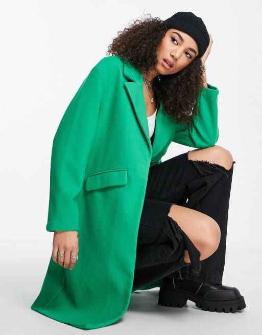 Bershka longline tailored coat in green