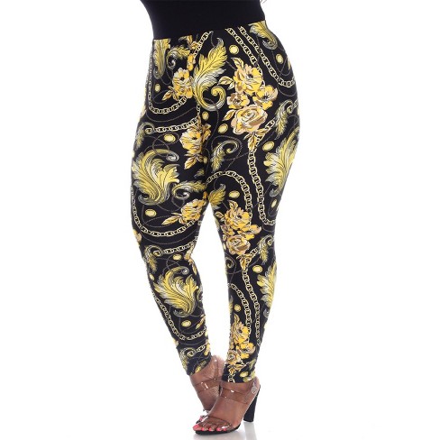 Women s Plus Size Printed Leggings Black gold One Size Fits Most