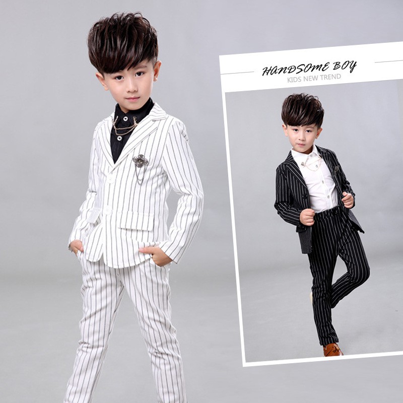 Black and white outfits for kids clearance, Kids Gentleman Suit Boys Jacket Pants Set Black White Stripe clearance