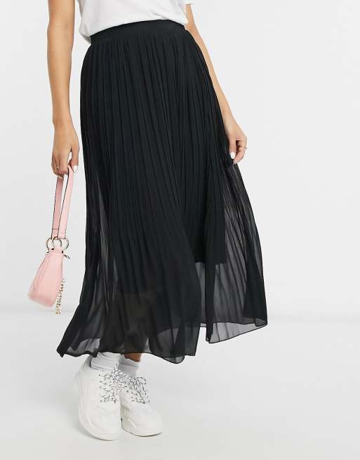 Black chiffon pleated midi skirt clearance, Lightsome Chiffon Pleated Midi Skirt in Black clearance