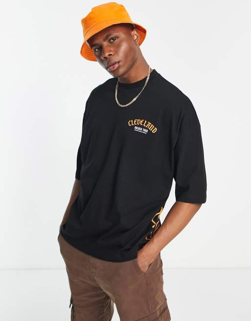 Black cle t shirt clearance, ASOS DESIGN oversized t shirt in black with Cleveland back chest clearance